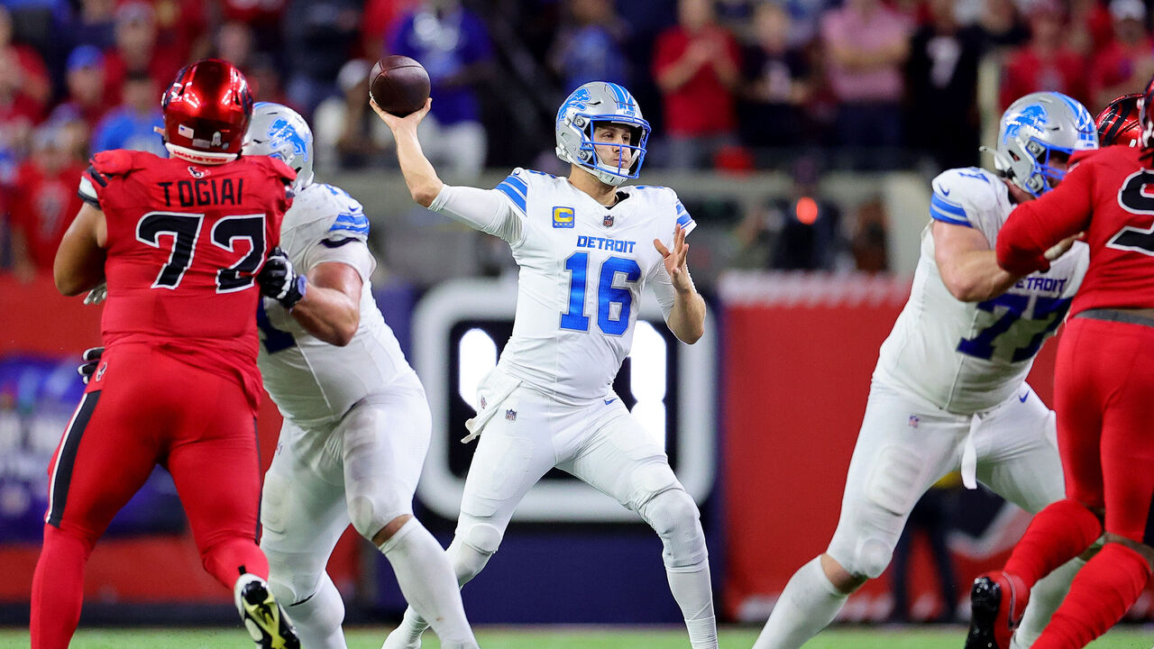 Detroit was the team that could do no wrong for the last six games. Jared Goff threw 22 incompletions over that stretch, while the Lions put up 26 touchdowns. That's not the team we saw Sunday night against the Texans. With the run game bottled up and the offense almost exclusively in his hands, Goff's decision-making crumbled. His five interceptions were the most since Jameis Winston in 2019. Yet the Lions managed to stay in it and win anyway. That makes Goff just the third QB this century (Matt Ryan - 2012, Tony Romo - 2007) to win a game while throwing five picks. If that isn't enough for a fellow contender to put away this squad, it's tough to imagine many teams being able to hang with them in far less wacky games. The Lions are the team to beat in the NFC, and they're probably the Chiefs' biggest obstacle to a three-peat.
